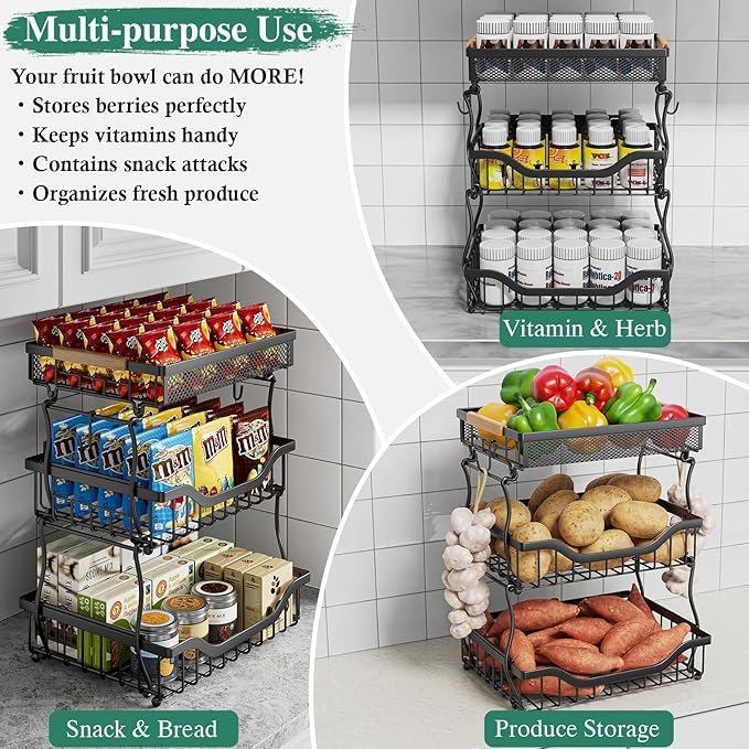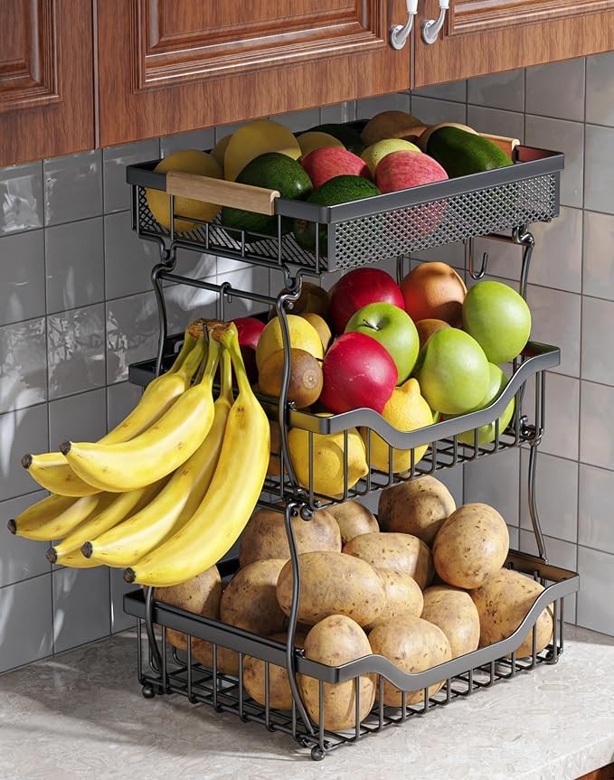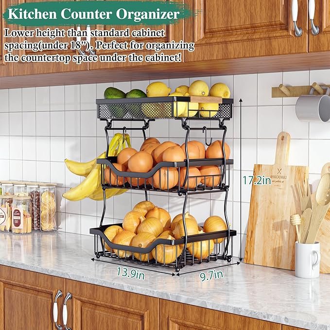 Kitchen Countertop Organizer: Keeps fruits, snacks, and veggies neatly organized and visible, encouraging healthy snacking for the whole family.
